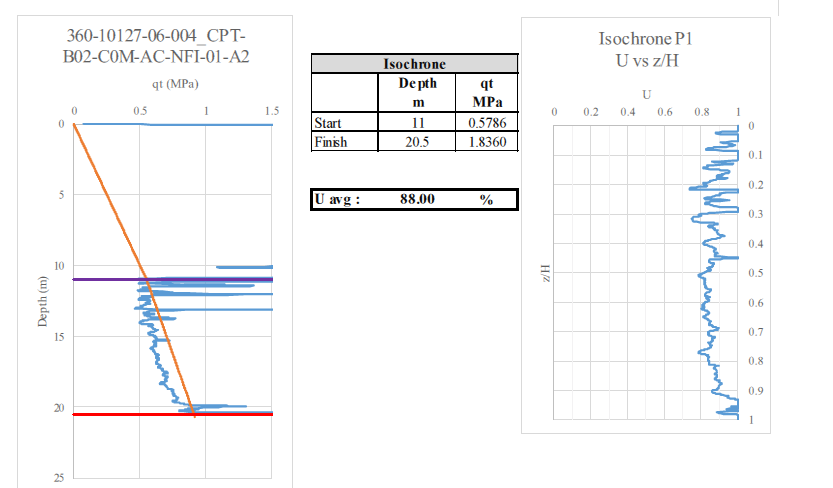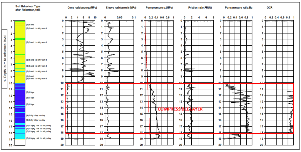 The authors have developed methods for the interpretation of these combined excess pore water pressures to predict the degree of consolidation and strength. The methods can separate the excess pore water pressure due to penetration and the prior existing pore water pressure. The methods for interpretation of the degree of consolidation include the use of the Schmertmann method (which is found suitable for a naturally deposited deposit but not suitable for reclamation case histories), the use of pore pressure ratio (Bq) value, and the dissipation curve with considering the existing excess pore water that still exists. Recently, Rahardjo (2016) has developed the use of Modified Pore Pressure Ratio (Bq*), which is defined as porewater pressure (u2) divided total tip resistance (qt). This development is essential for very soft soils and ultra-soft soils. When carefully examined, the tip resistance profiles will not form a linear tip resistance (not straight line). Hence, the interpretation was made considering the initial (remaining) excess pore pressure or the effective stress at a particular time. Furthermore, a new approach to the degree of consolidation prediction has been proposed by Rahardjo (2014, 2015) and Rahardjo et al. (2017). The methods have been proved to be consistent and have the potential for prospective future interpretation. In conclusion, this research has been able to characterize the behavior of very soft soils and ultra-soft soils.